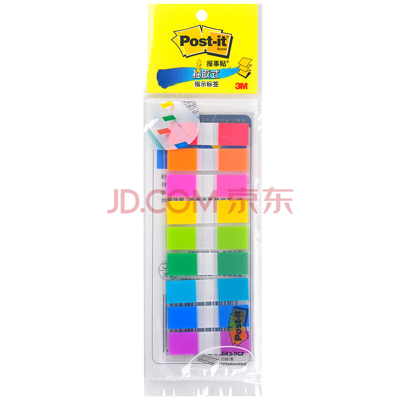 商品相册:3M【全网低价】便签 便条纸/便利贴/报事贴/透明指示标签 办公用品 学习用品文具 683-9CF(9色装)第