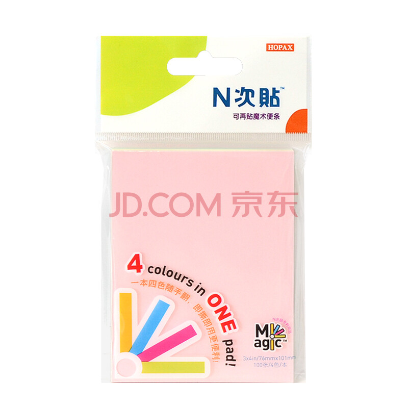 商品相册:N次贴(STICKN)魔术便利贴便签纸记事贴76*101mm 淡彩4色100张/本 31102第
