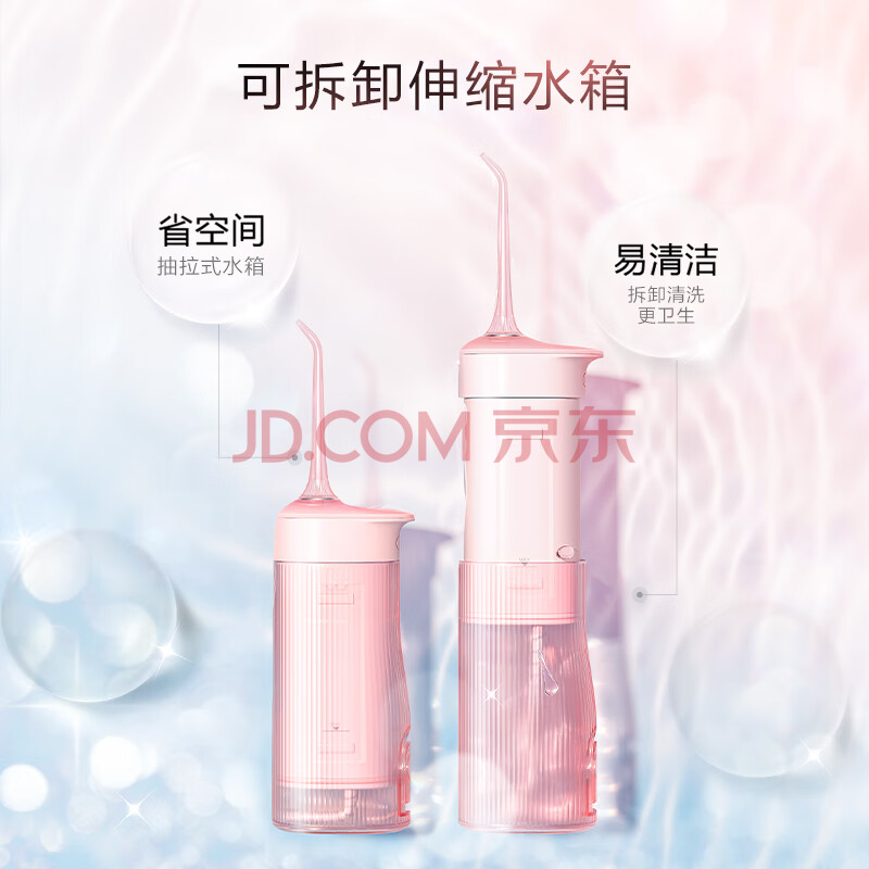 商品相册:SOOCAS 香氛冲牙器 【清洁+留香二合一】高频脉冲深层洁齿 4档模式 可伸缩便携洗牙神器 W1樱花粉第