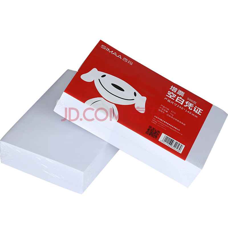 商品相册:西玛【京东JOY联名款】西玛发票版空白凭证纸 240*140mm 500张/包 用友金蝶记账凭证单据打印纸第