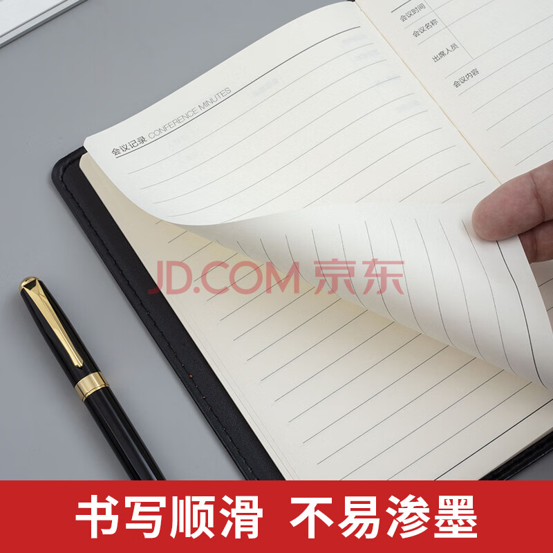 商品相册:晨光(M&G)文具黑色软皮革面笔记本本子开会办公用品会议记录本日记本记事本商务A5/25K80张单本APYE4Y55第
