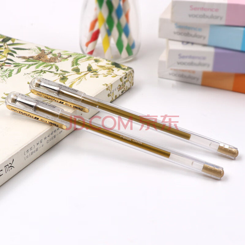 商品相册:派通(Pentel )K108手帐彩色啫喱笔 0.8mm高光金属色走珠笔贺卡笔绘画珠光笔 金色5支装第