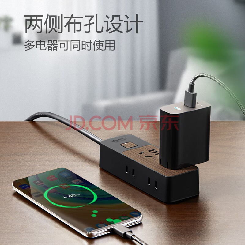 商品相册:公牛(BULL)插座/插线板/插排/排插/接线板/拖线板 4位总控1.8米 黑色木纹 GN-R1220第
