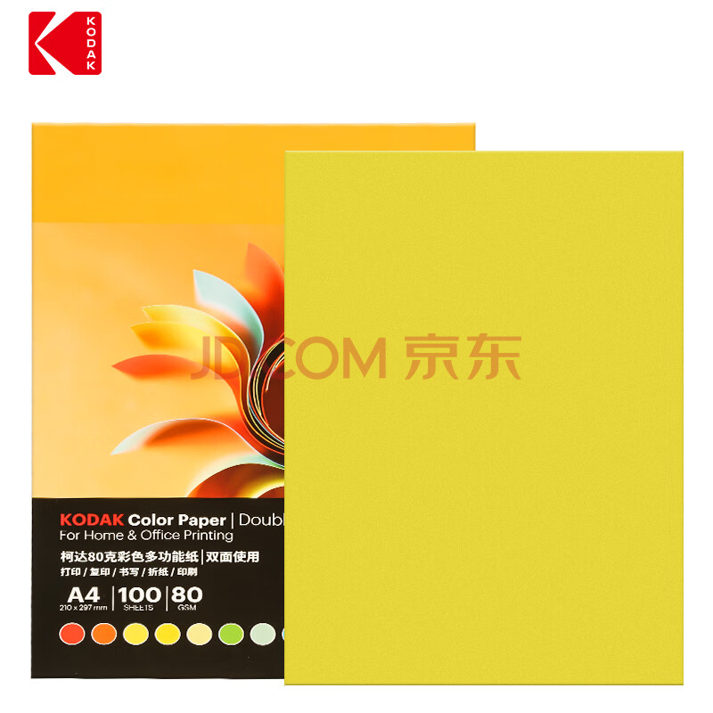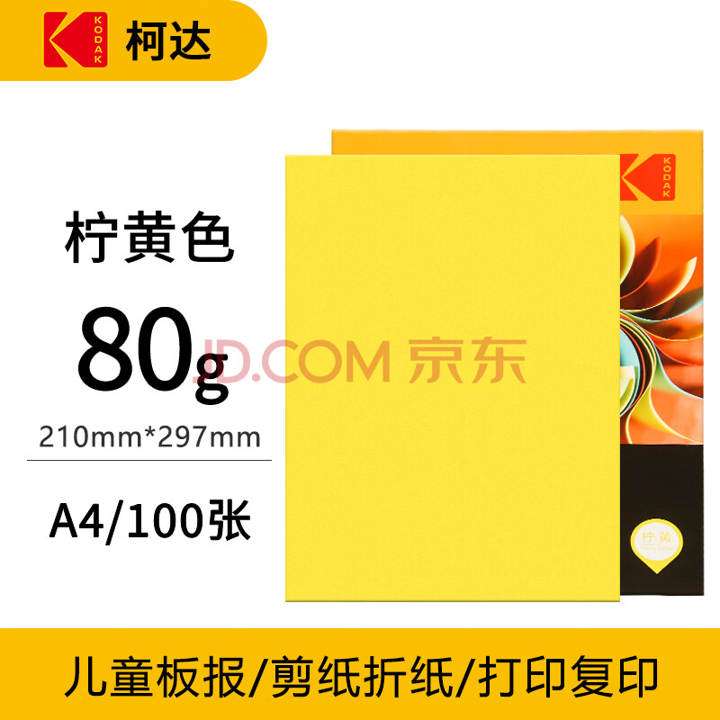 商品相册:KODAK柯达彩色复印纸A4多功能打印纸儿童手工彩色卡纸千纸鹤折纸 柠黄色彩纸100张9891-126第