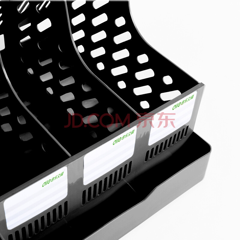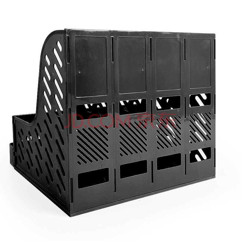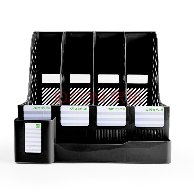 商品相册:递乐 加厚多功能笔筒四联文件框/文件栏/组合文件架/资料架/文件筐 四栏带收纳盒 1899黑色第