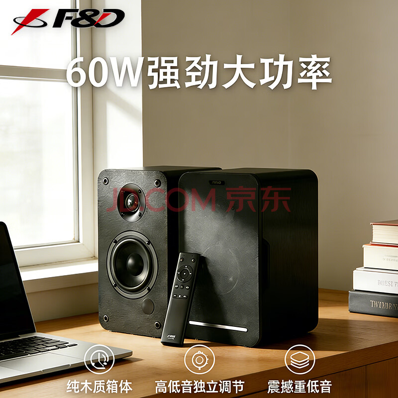 商品相册:奋达R40BT桌面蓝牙音箱2.0声道纯木质高音质高重低音立体声书架音响家用有源音箱笔记本电脑电视通用第