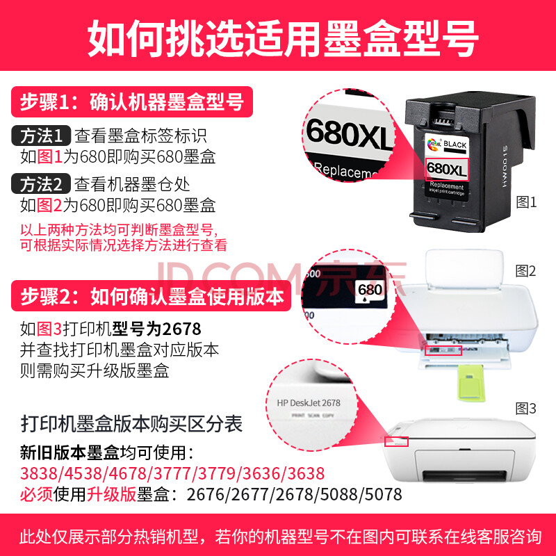 商品相册:绘威适用惠普680墨盒 适用惠普HP 2677 3636 3638 3776 3777 3838 4678 5088 5078打印机 可加墨 黑色第
