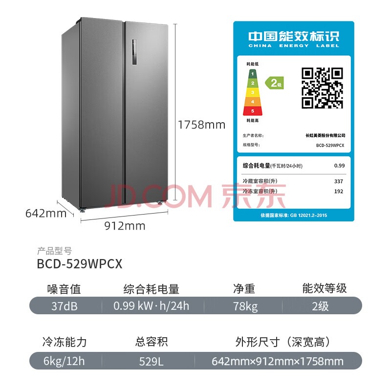 商品相册:美菱(MELING)【离子净系列】529升双开门对开超薄冰箱两门变频风冷无霜大容量净味BCD-529WPCX第
