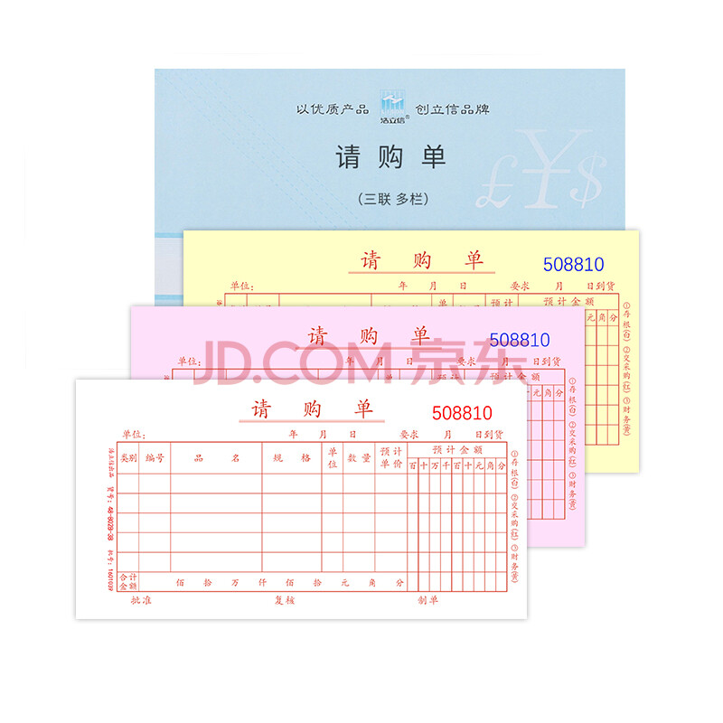 商品相册:浩立信 三联请购单 采购申请单 物料申购单175*95mm5本/包×150页/本 带撕裂线无碳复写 (5本*50组)第