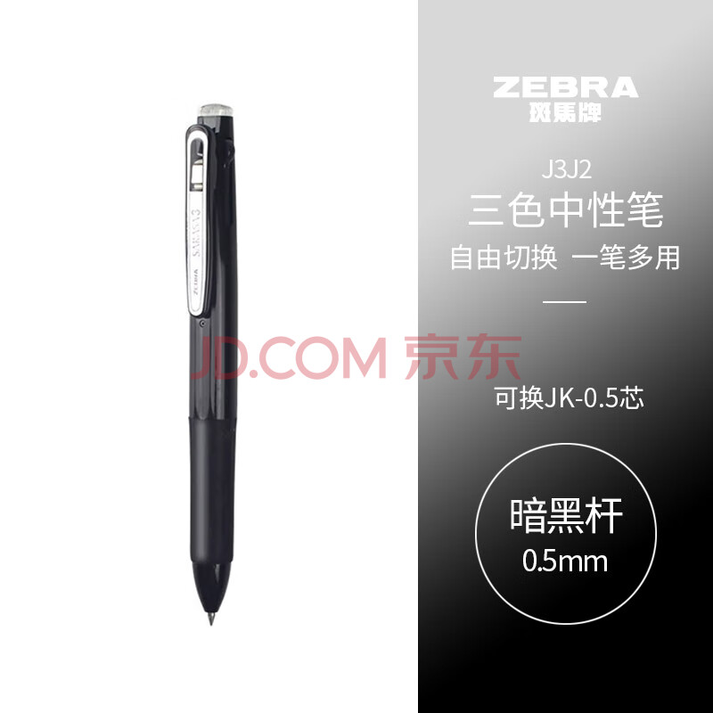 商品相册:斑马牌(ZEBRA)多功能三色中性笔 黑蓝红0.5mm多色笔 学生商务办公签字笔J3J2 暗黑杆第