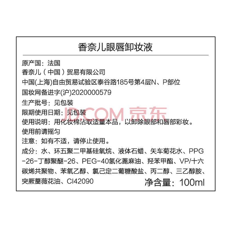 商品相册:香奈儿(CHANEL)眼唇卸妆液100ml(卸妆水 温和清洁)送女友 送老婆第