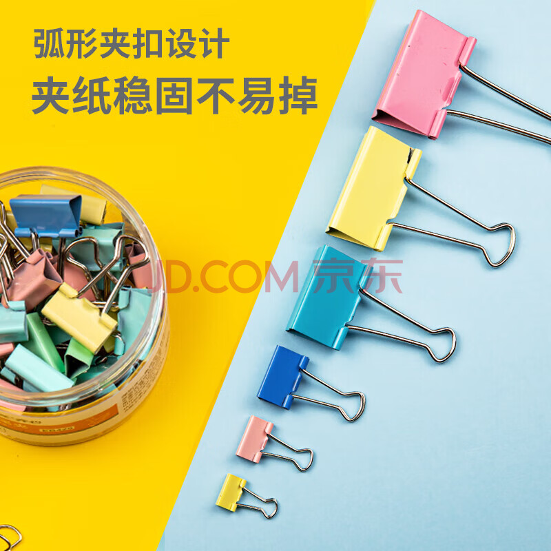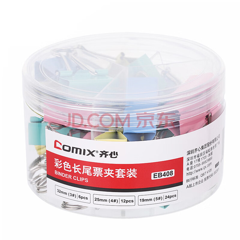 商品相册:齐心(COMIX)42只彩色长尾夹/票据燕尾夹子(32mm6只 25mm12只 19mm24只)42只/桶组合装办公工具 EB408第