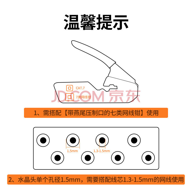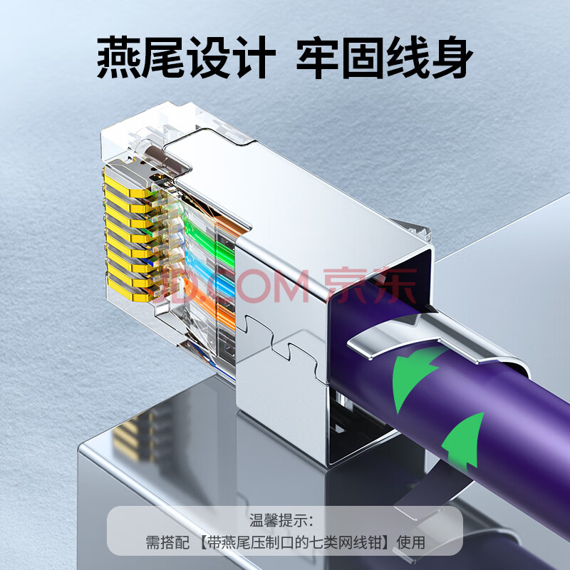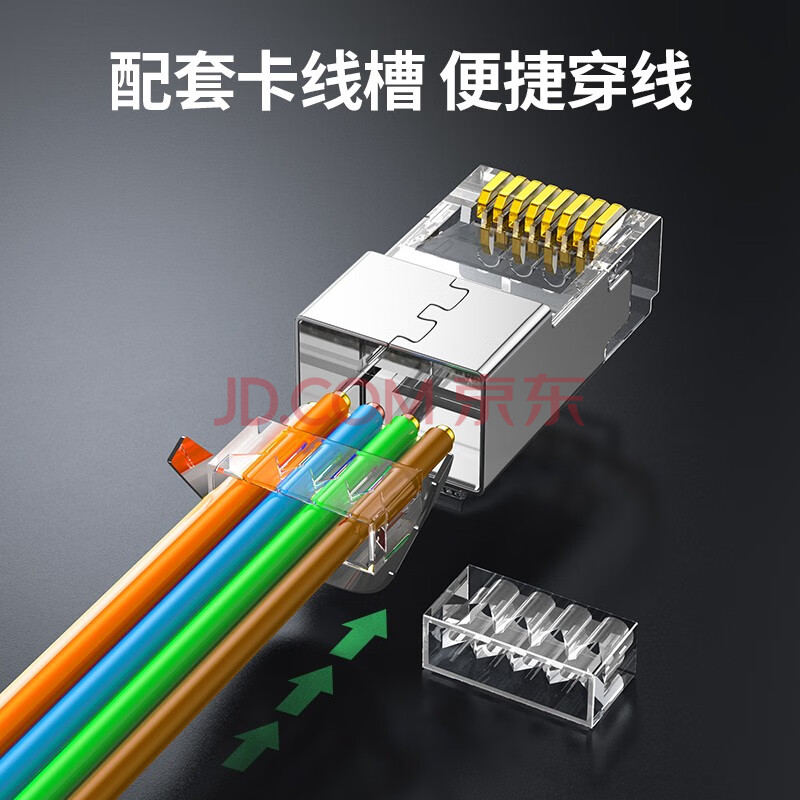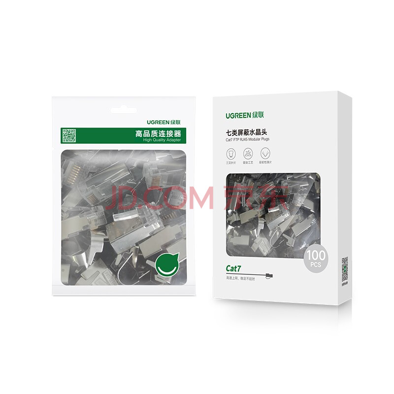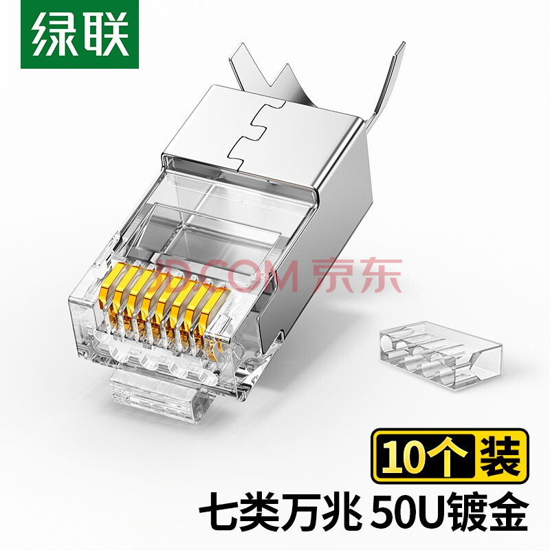 商品相册:绿联七类网线屏蔽水晶头 7类万兆网络接头 50U镀金工程级RJ45电脑网线连接器CAT7两件式接头10个 50634第