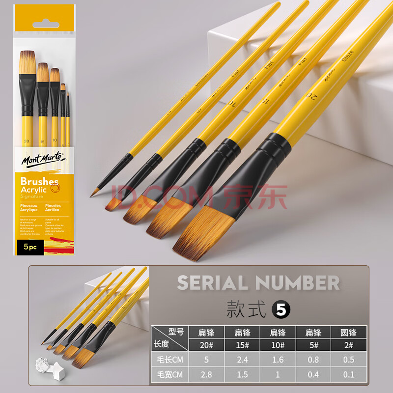 商品相册:蒙玛特(MontMarte)水粉笔5支装水彩画笔儿童水彩画画笔美术颜料勾线笔平头排笔学生水彩笔套装BMHS0016第
