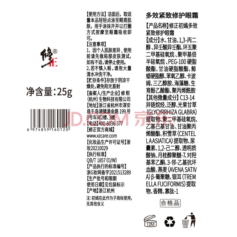 商品相册:修正多效修护眼霜3支装淡化细纹抗皱紧致眼周补水保湿精华 男女通用第