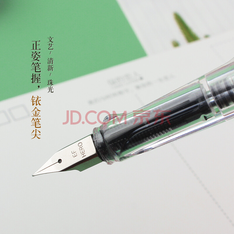 商品相册:英雄(HERO) 钢笔 359B学生办公练字正姿铱金钢笔(附加6支墨囊) EF尖 珠光粉第
