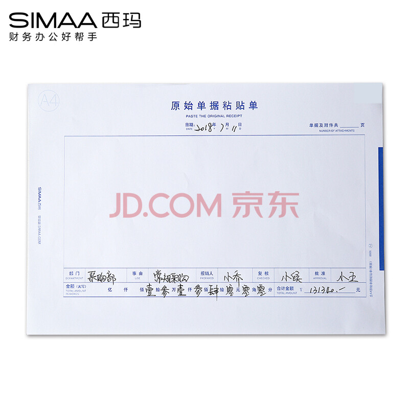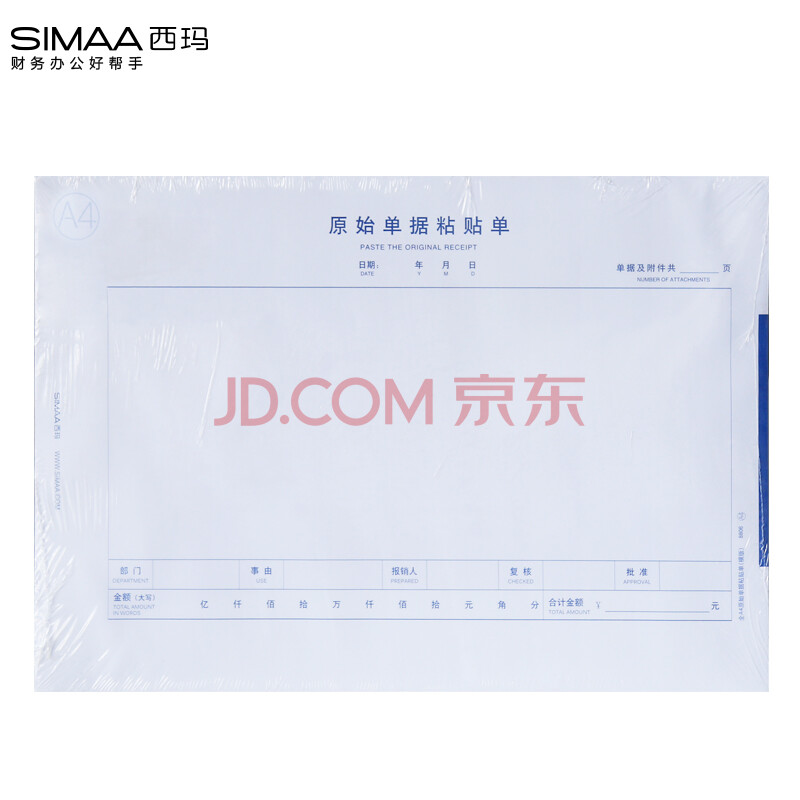 商品相册:西玛(SIMAA)8806 A4规格原始单据粘贴单 210*297mm 50页/本5本/包 A4纸大小粘贴费用报销单据财务用品第