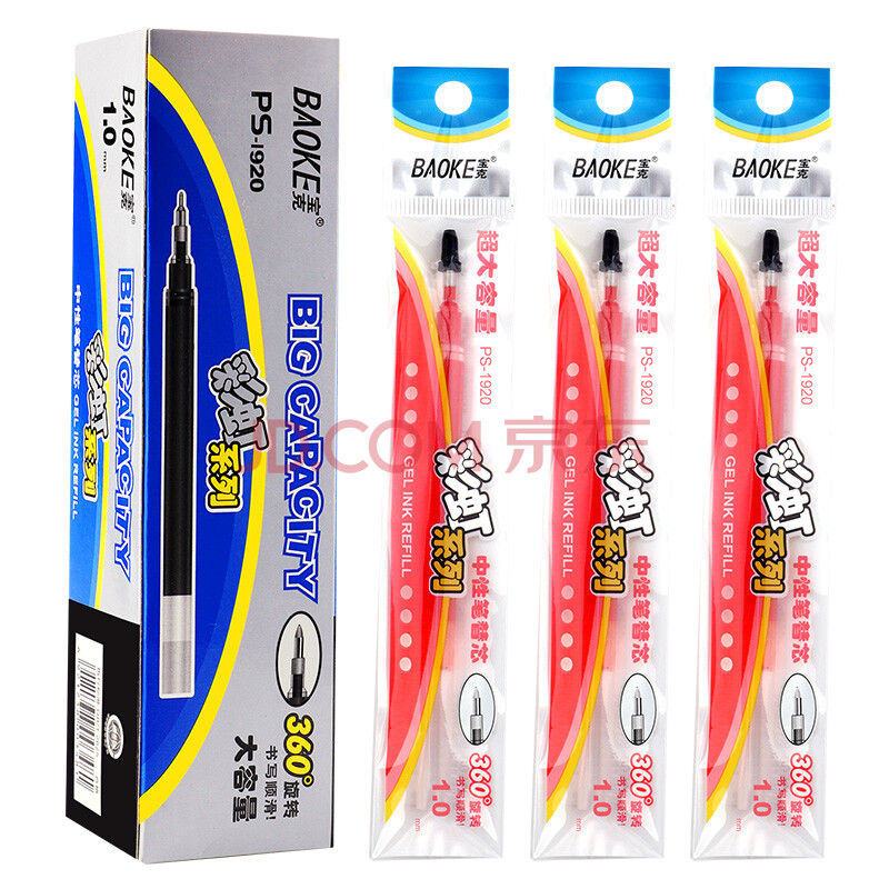 商品相册:宝克(BAOKE)PS1920 1.0mm大容量中性笔笔芯子弹头水笔签字笔替芯 红色 12支/盒第