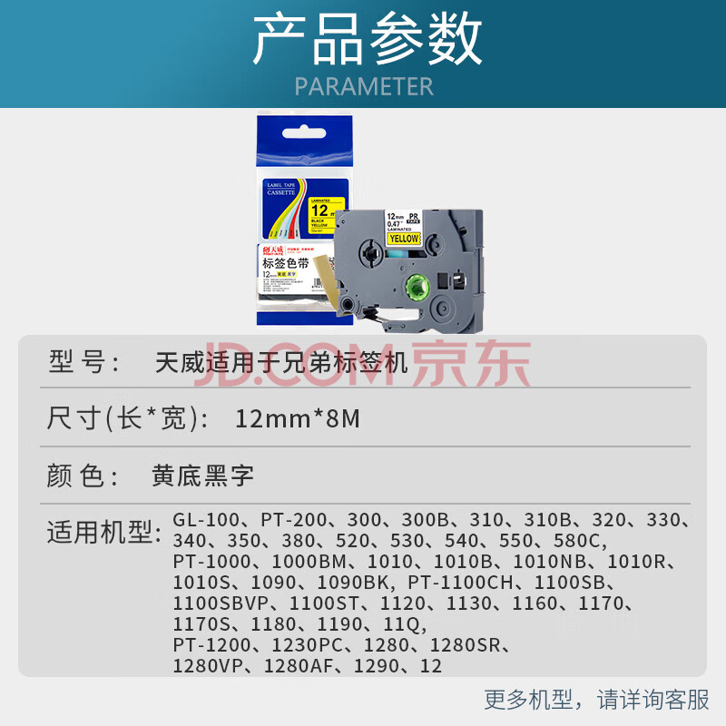 商品相册:天威标签色带适用兄弟标签机色带覆膜标签带 标签打印机色带不干胶标签纸 TZw-631 黄底黑字 12mm第