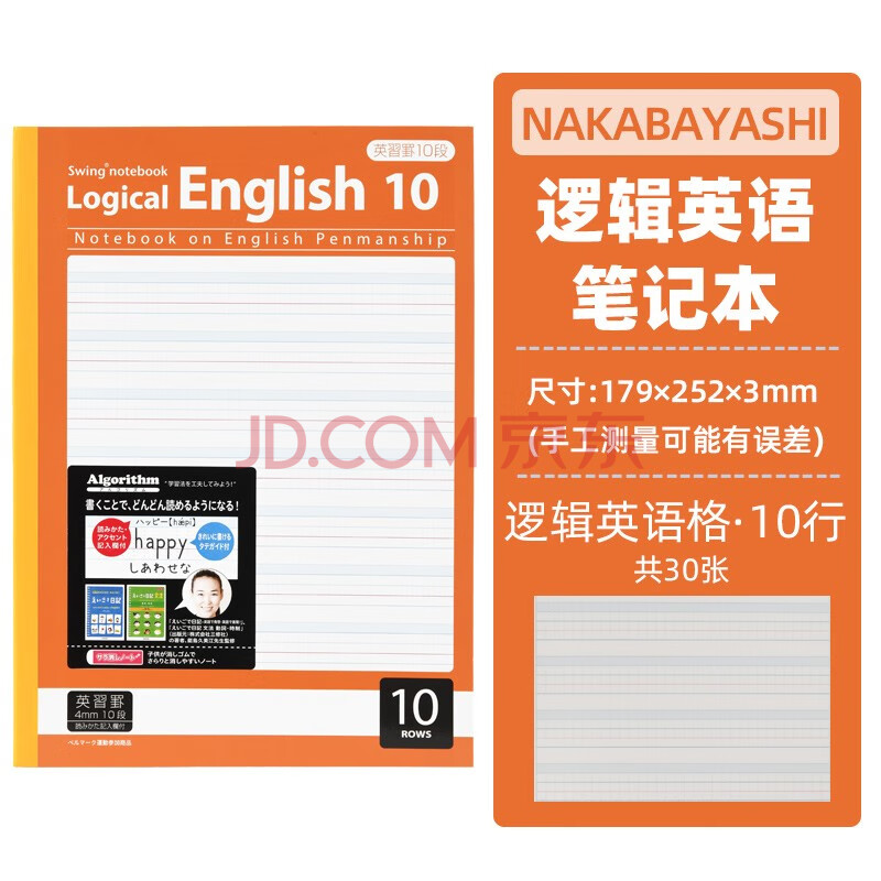 商品相册:Nakabayashi仲林英语本B5/30张 学生作业本外语单词练习笔记本 10段第