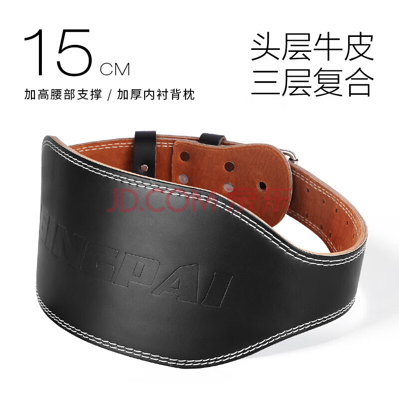 商品相册:GINGPAI SPORT牛皮健身腰带深蹲运动护腰男女专业杠杆器械训练力量举重硬拉卧推 黑色XL码第