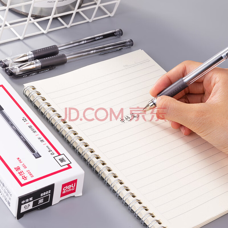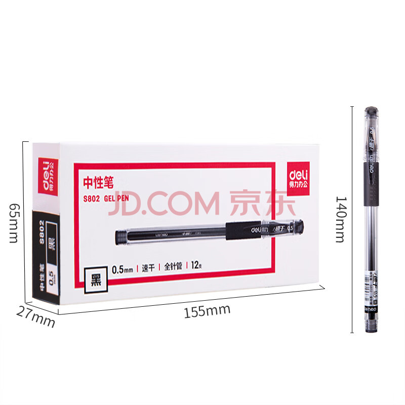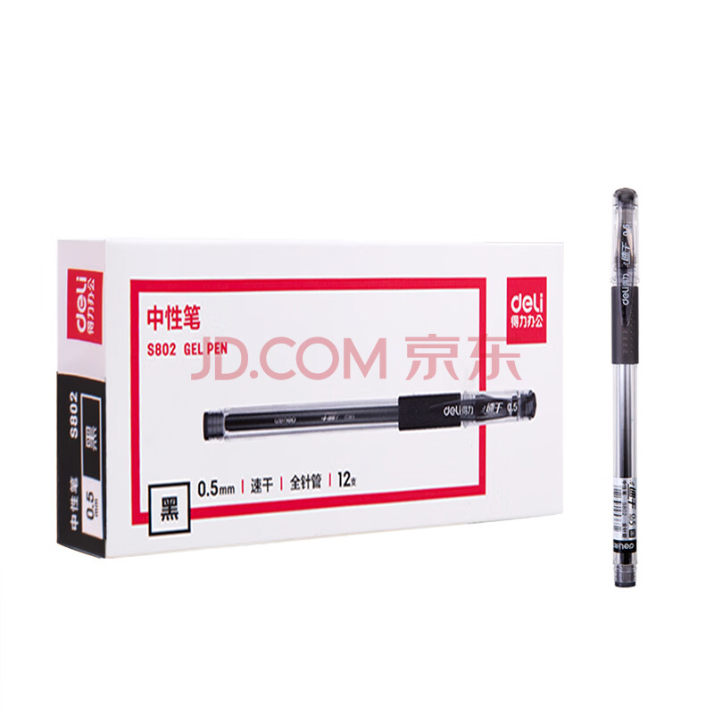 商品相册:得力(deli)0.5mm拔帽速干中性笔 全针管 黑色12支/盒S802第