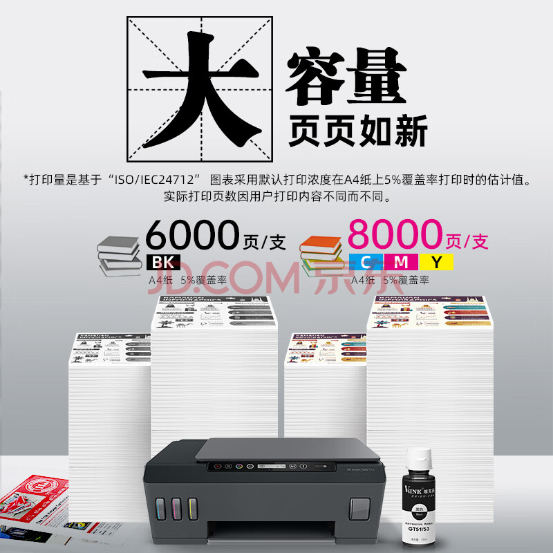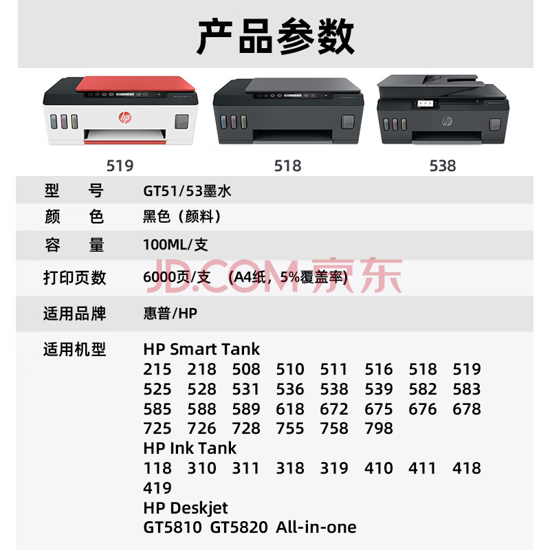 商品相册:V4INK 1VV21AA GT53XL墨水颜料gt51墨水黑色适惠普518墨水538打印机墨水519墨水511 588 589 678 672第