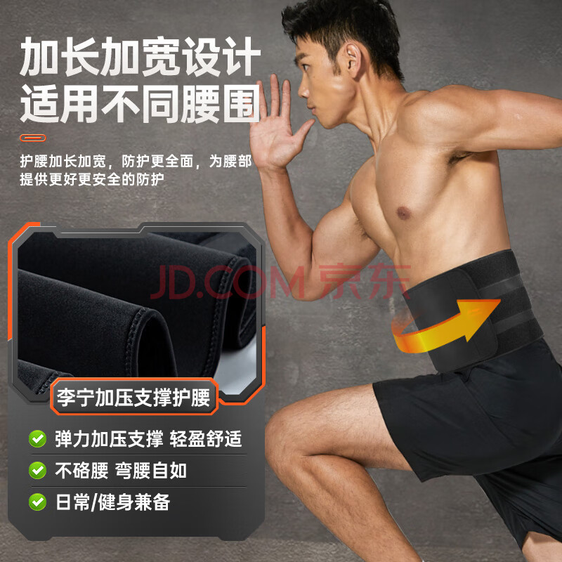 商品相册:李宁护腰带保暖运动健身腰间盘突出腰肌劳损暴汗燃收腹脂束腰久坐跑步第1张/共7