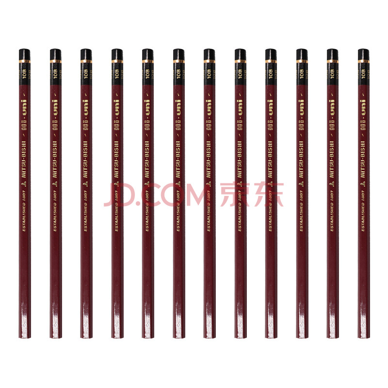 商品相册:uni三菱 素描绘画铅笔 学生铅笔HI-UNI木杆铅笔10B 12支装第