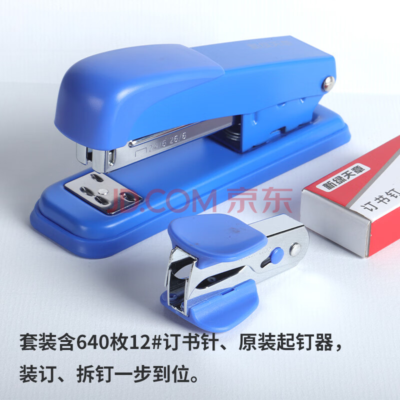 商品相册:天章(TANGO)钢质办公订书机3件组合套装(订书器 订书钉24/6 起钉器)适配12#钉/蓝色第