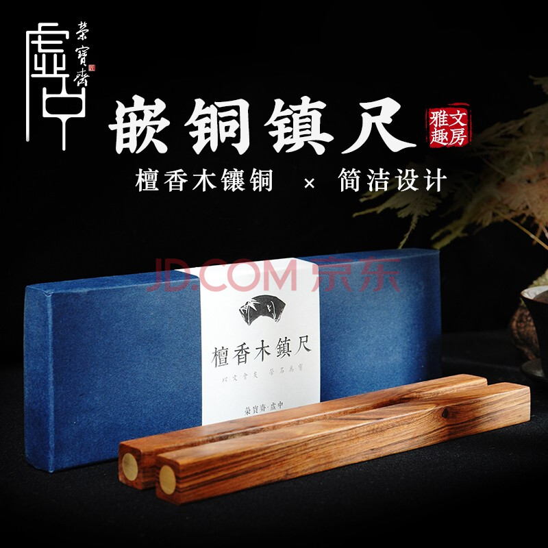 商品相册:【全网低价】荣宝斋 镇尺 实木镶铜古风镇纸 中式文房四宝学生毛笔书法绘画压纸 檀香木镶铜镇尺第