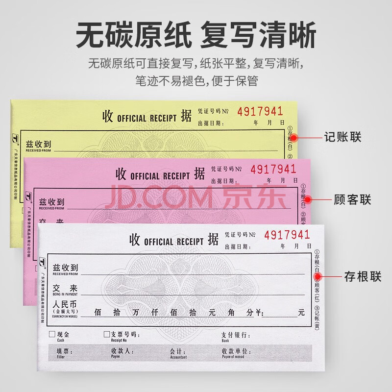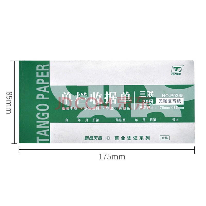商品相册:天章(TANGO)54K三联单栏收据175*85mm/无碳复写会计手写单据/销售购物付款/带撕裂线/30组 十本装 财会用品第
