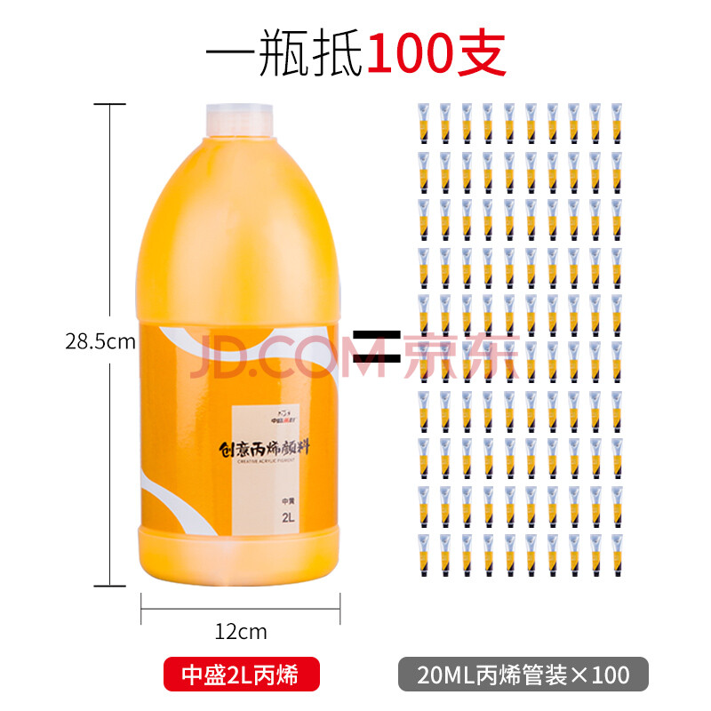 商品相册:中盛画材2L丙烯颜料墙手DIY防水涂料白球鞋子衣服t恤材料炳稀工具升桶装室内外商业工程朱红美术美育工具第
