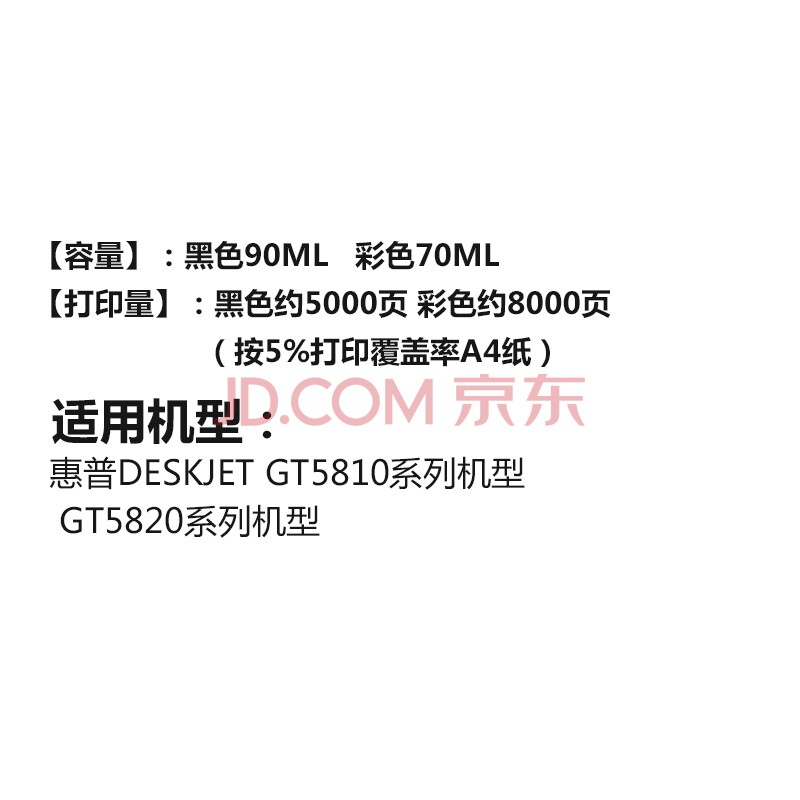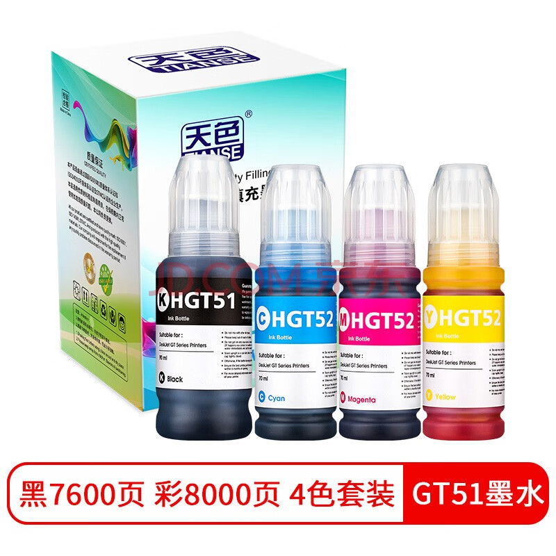 商品相册:天色GT51XL/GT52XL四色大容量墨水适用惠普HP Officejet GT5810墨仓式打印机墨水GT5820墨水第