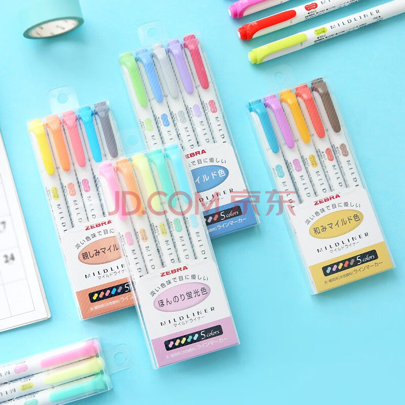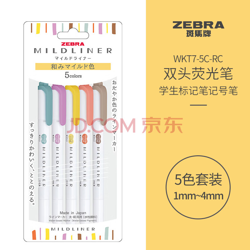 商品相册:斑马牌 (ZEBRA)荧光笔 WKT7 5色套装 舒缓系列 双头荧光笔 学生标记笔记号笔 WKT7-5C-RC第