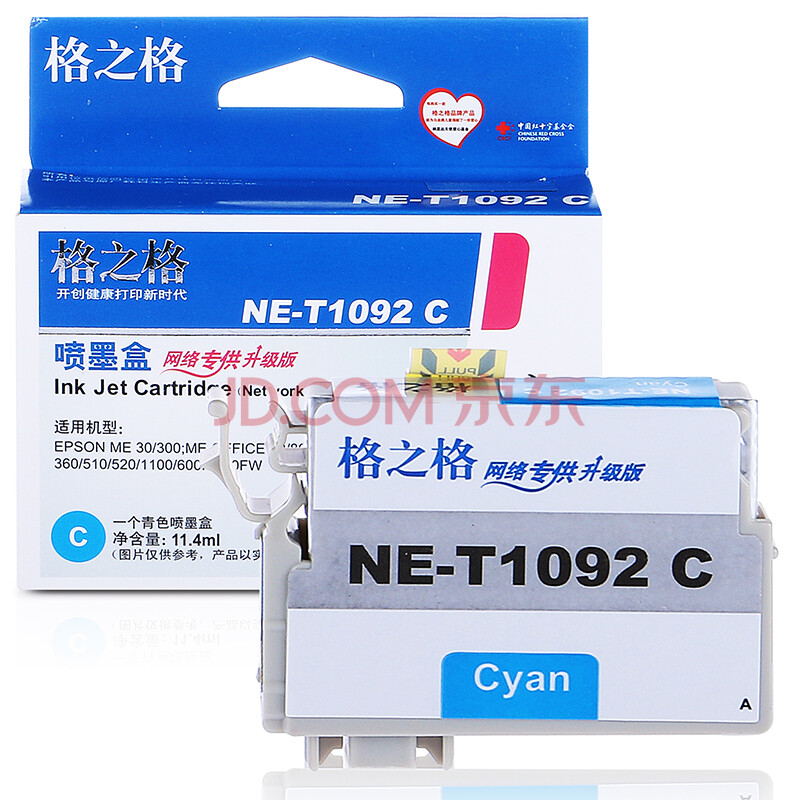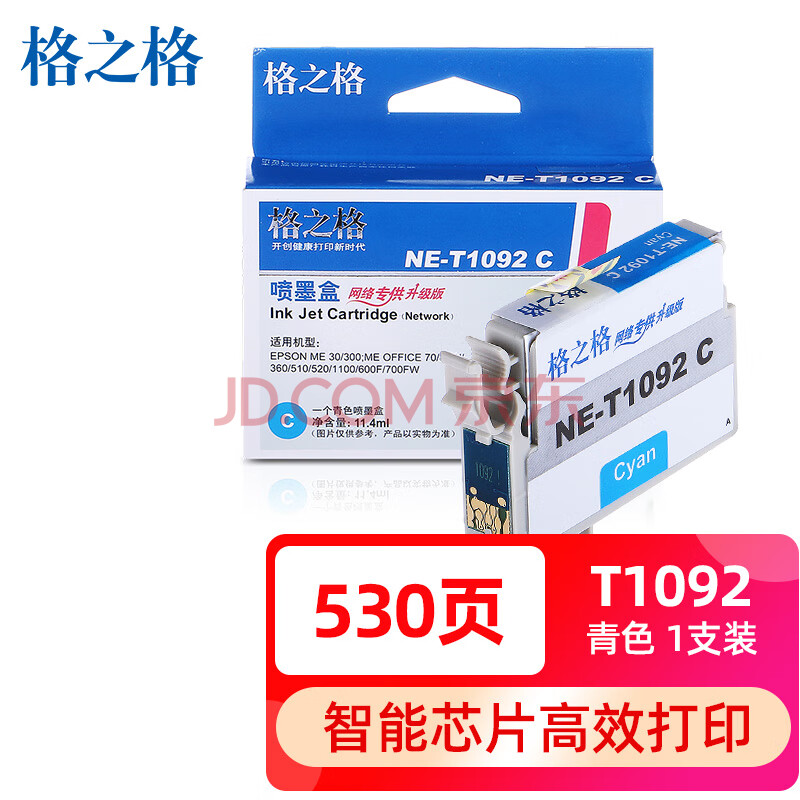 商品相册:格之格T1092青色墨盒NE-T1092C适用爱普生ME30 ME300 ME360 ME70 ME510 ME520 ME600F ME80打印机墨盒第