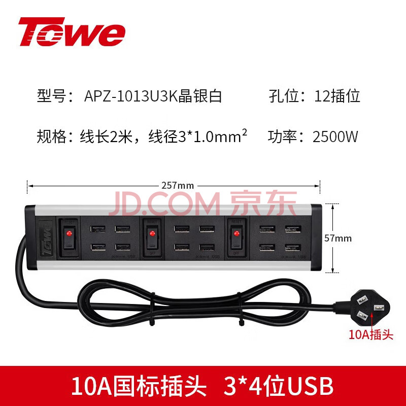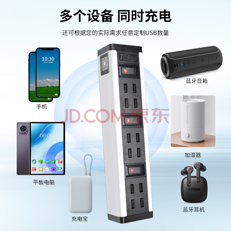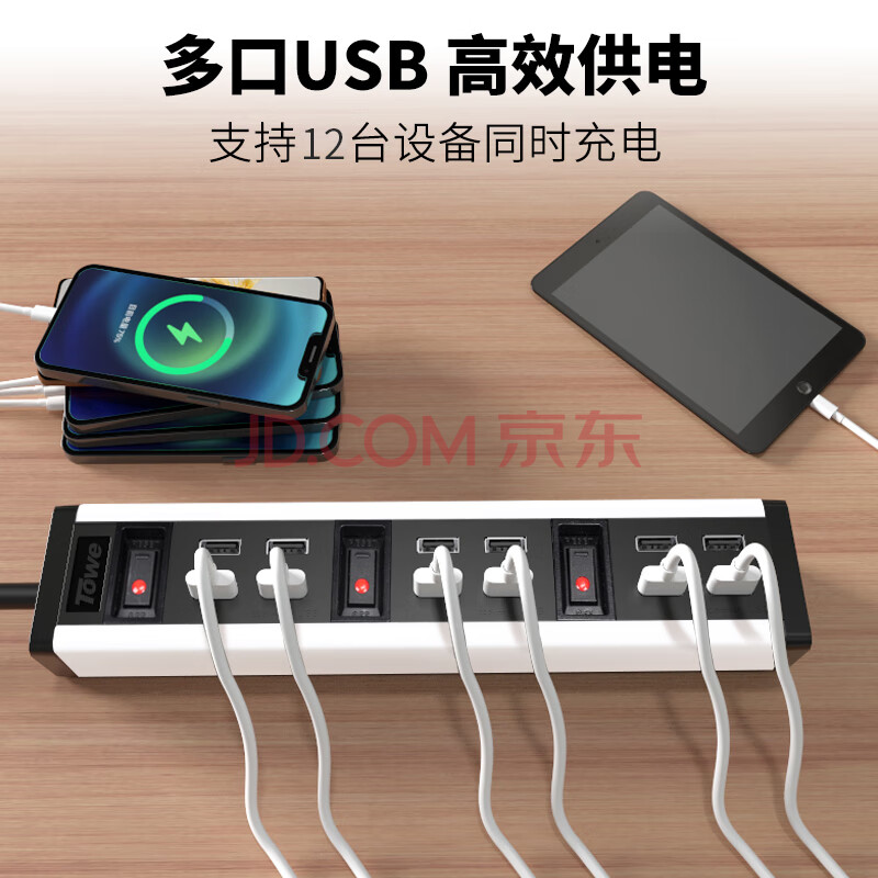 商品相册:TOWE同为多位USB工业级充电插座PDU插线板分控插排12位USB口插座(银)第
