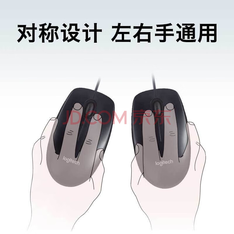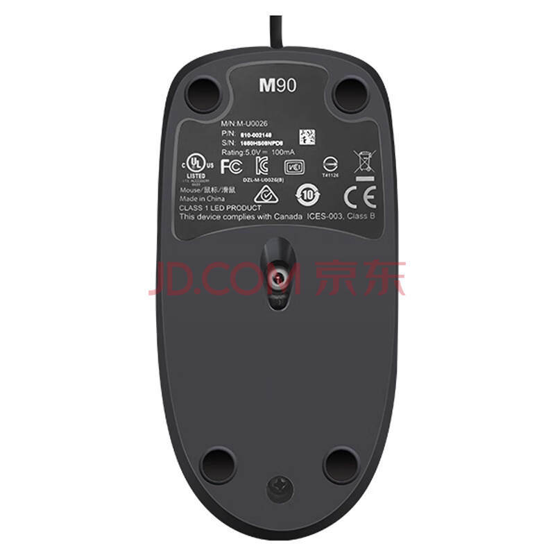 商品相册:罗技(Logitech)有线光电鼠标 电脑笔记本家用鼠标 左右手通用对称鼠标 USB即插即用 M90 黑色第