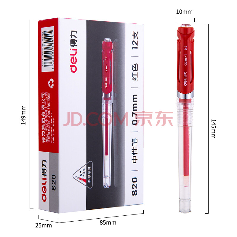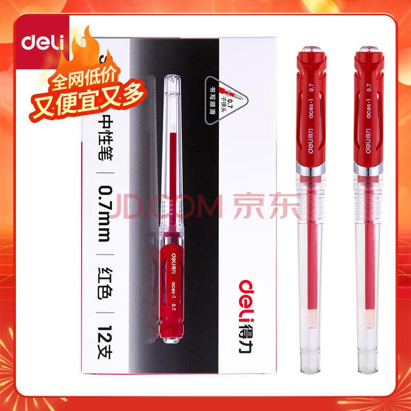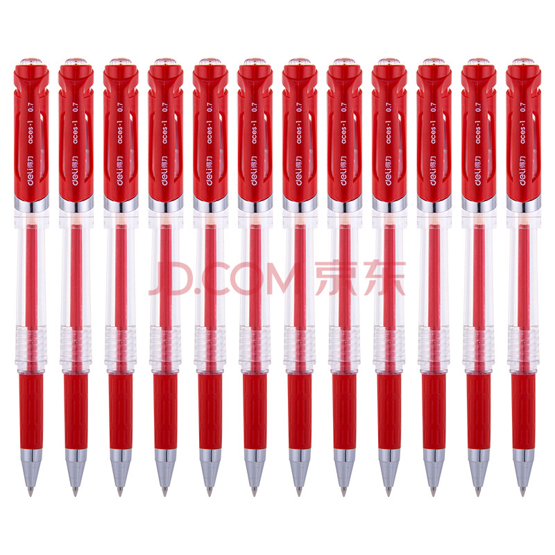 商品相册:得力(deli)0.7mm办公中性笔水笔签字笔 办公用品 12支/盒DL-S20红第