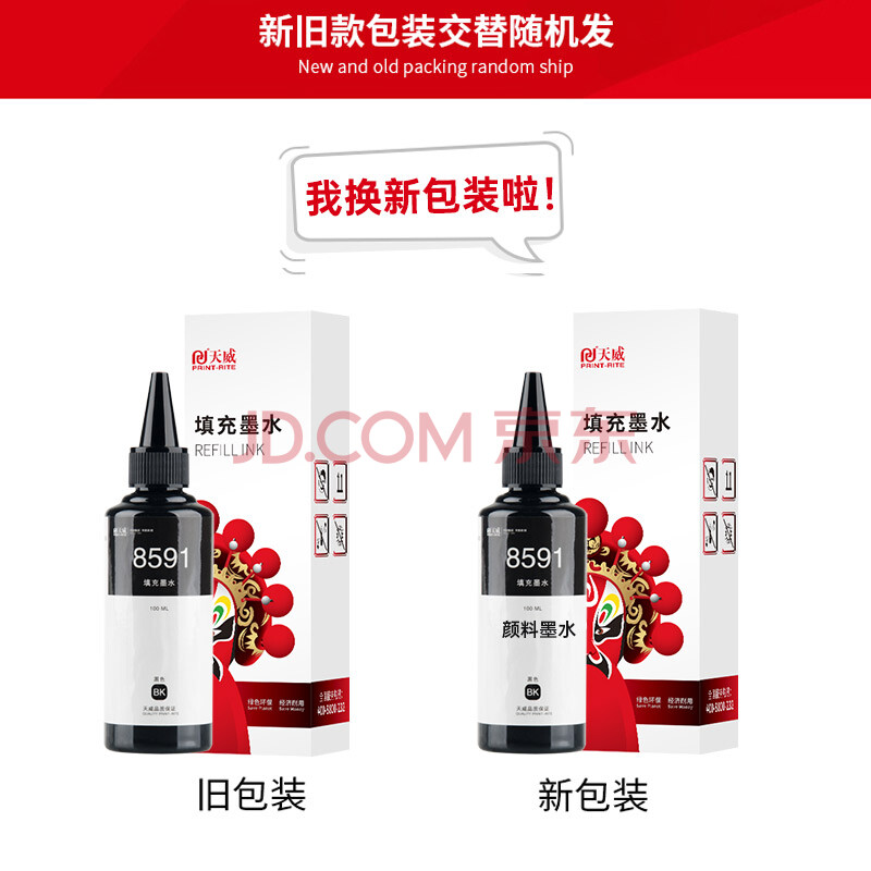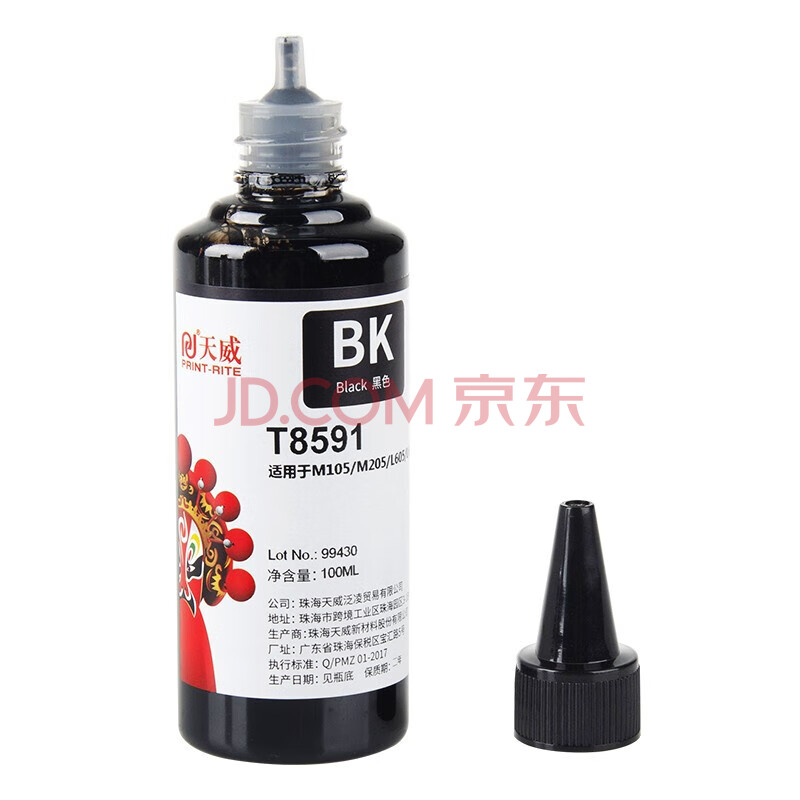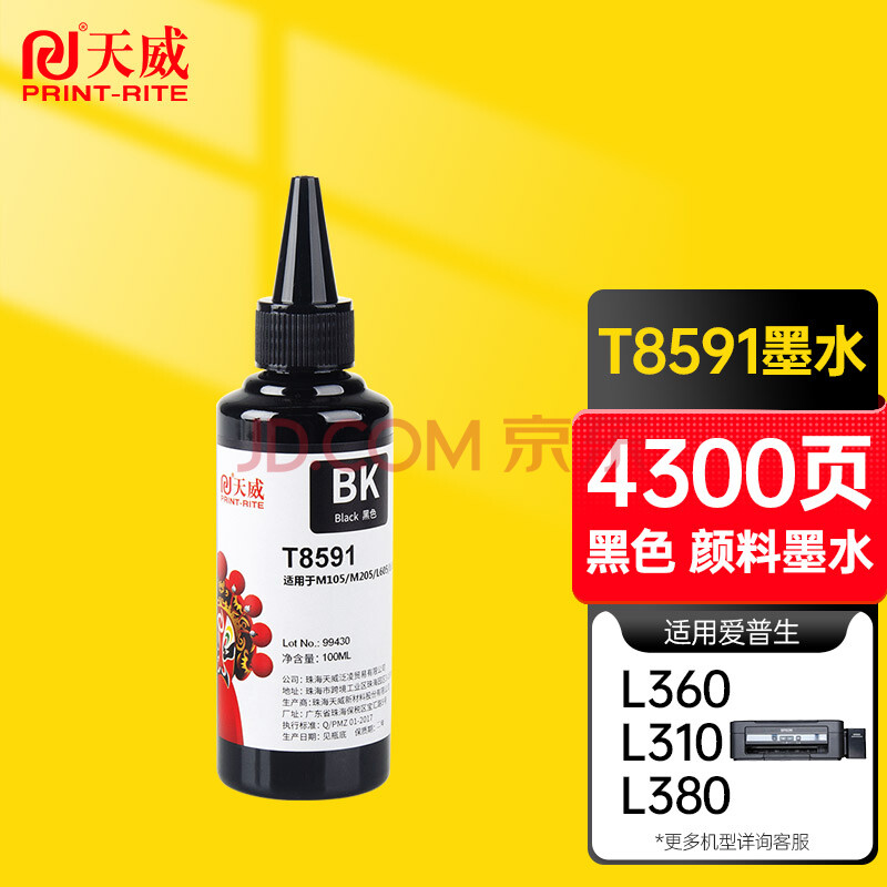 商品相册:天威T8591黑色颜料墨水适用爱普生M105 M205 L605 L655 L1455 M101 T859打印机墨盒墨水第