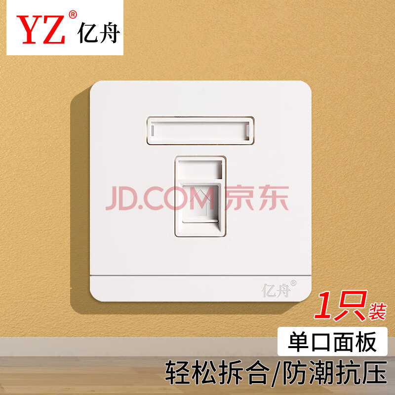 商品相册:亿舟 YZ-A160-1 单口网络模块面板 工程级电话电视信息开关插座 86型网络面板 单口电脑网线插座 1只第