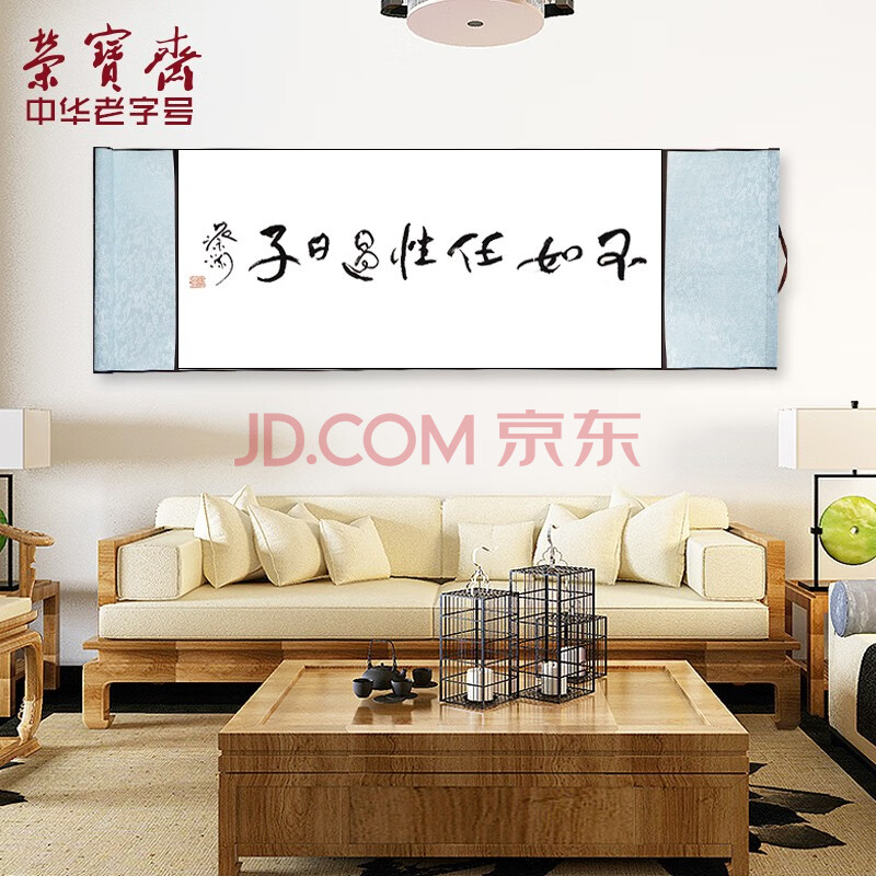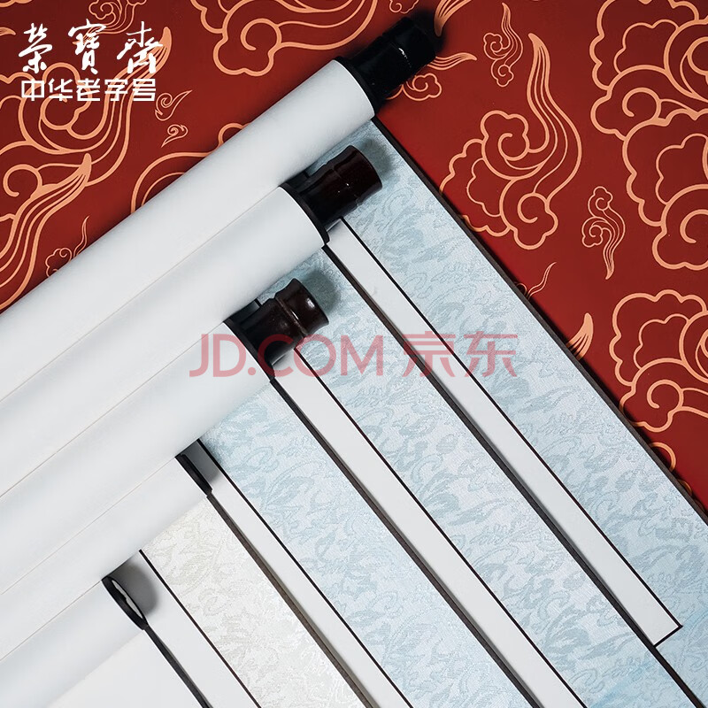 商品相册:荣宝斋空白书画宣纸卷轴 安徽泾县日星全绫精裱复古横幅挂画立 书法作品国画手工空白挂轴 三尺整张-竖轴第