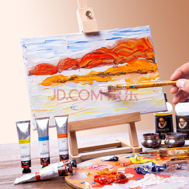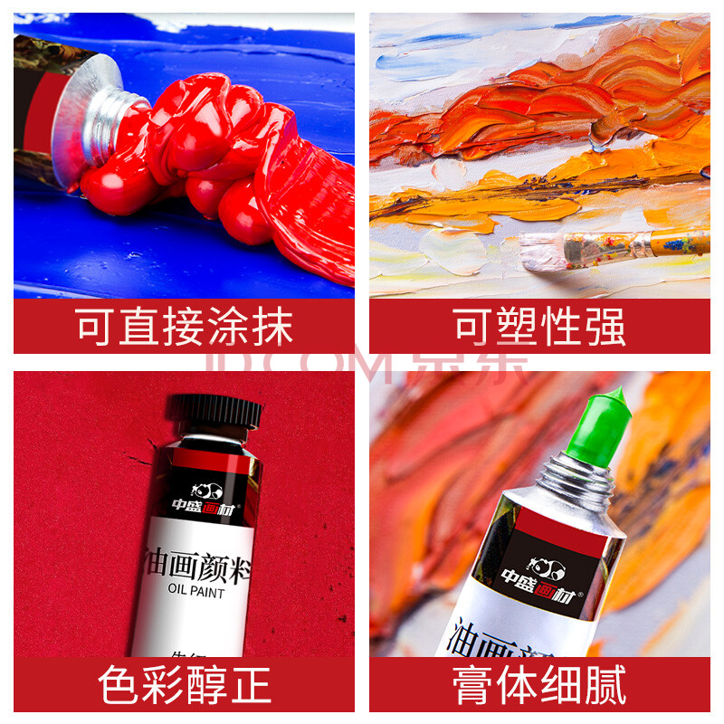 商品相册:【全网低价】中盛画材 【加量40%】12色油画颜料绘画工具初学者全套用品初学儿童油画材料布框笔美术画笔调色油稀释剂松节美术写生第