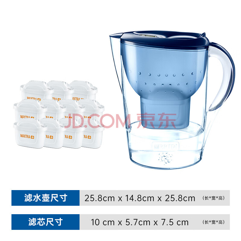 商品相册:碧然德(BRITA)过滤净水器 滤水壶 海洋系列 3.5L(蓝色)+去水垢专家版滤芯11枚 环保加固包装第