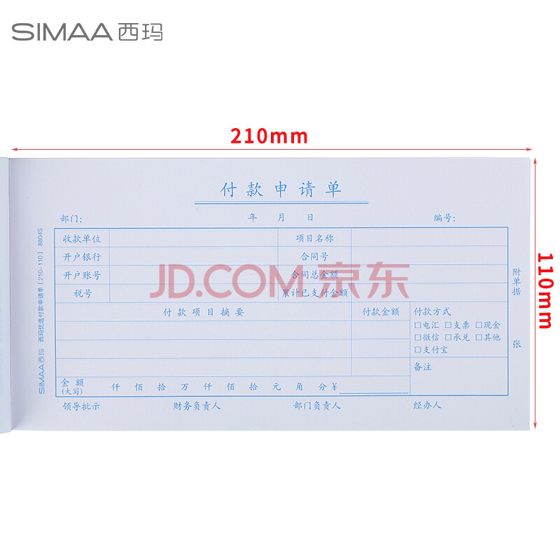 商品相册:西玛(SIMAA) 8804 优选付款申请单 210*110mm 50页/本 10本/包第