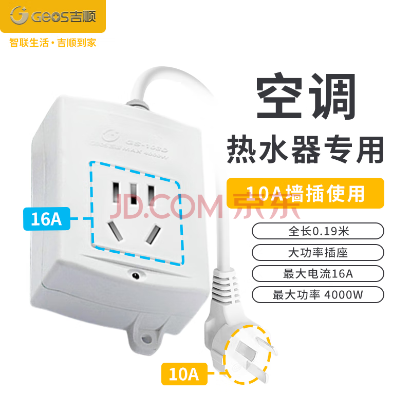 商品相册:吉顺10a转16a插座空调排插线板大功率热水器电磁炉延长线拖接线板插排4000W插头 0.19米第