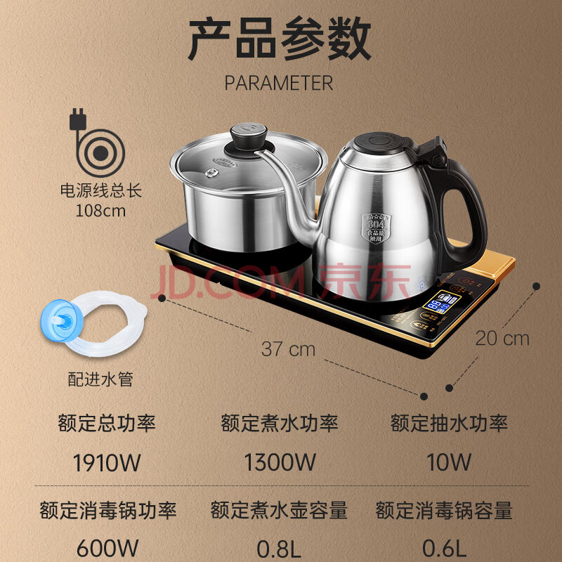 商品相册:金灶(KAMJOVE)全智能自动上水电热水壶 保温恒温烧水壶 电水壶304不锈钢烧水器全自动一体0.8L电茶炉 F9第