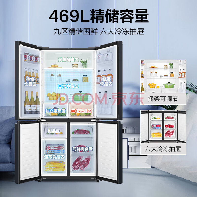 商品相册:统帅(Leader)海尔出品469L十字门冰箱变频超薄家用母婴BCD-469WGLTDEDBX库存有限只退不换第