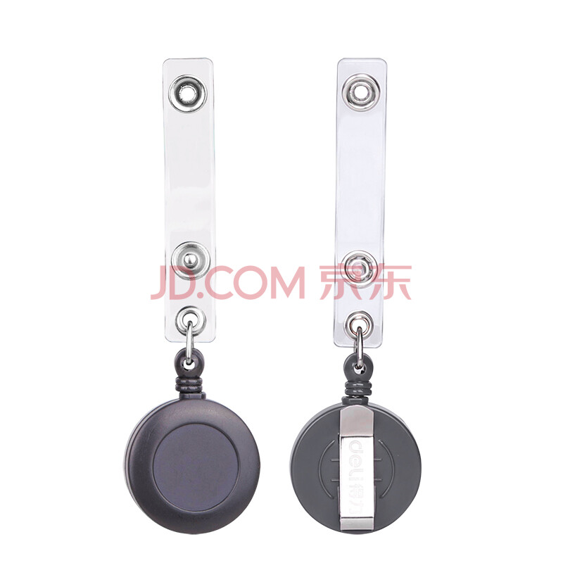 商品相册:得力(deli)12只工作牌 证件卡易拉扣直径30mm(12个/盒)可伸缩胸卡夹扣 学生胸牌黑灰8309第