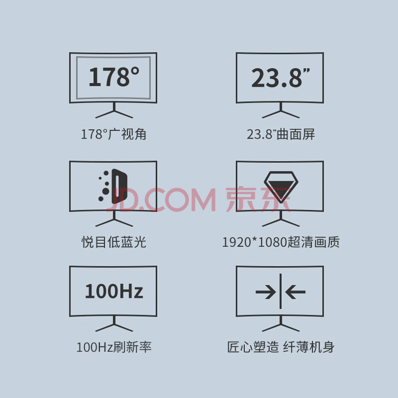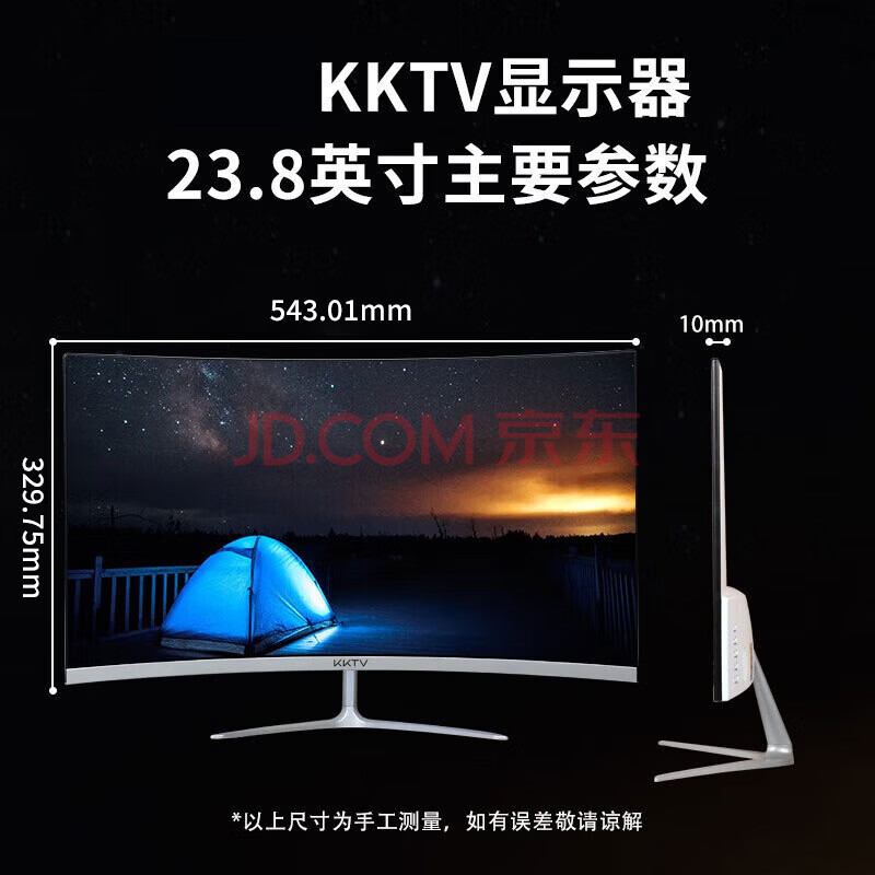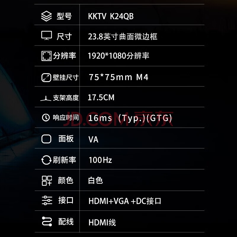 商品相册:KKTV23.8英寸 曲面显示器 100Hz刷新率 可壁挂 微边框 家用办公电脑高清显示屏 低蓝光 K24QB第